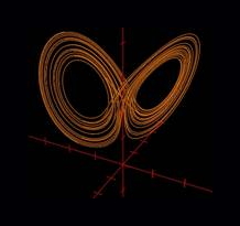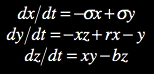 The work features two contrasting approaches to synthesis: one inspired by an instrument design by Csound guru Hans Mikelson, the other by music-scientist Jean Claude Risset. The Mikelson instrument is a sonification of the Lorenz attractor (Boulanger 2000), the chaotic system of three differential equations discovered by scientist Edward Lorenz shown below (Lorenz 1993).