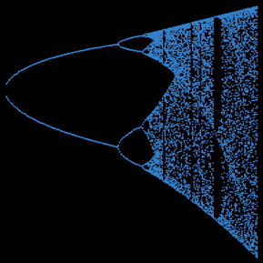 As long as I can remember, I’ve been fascinated by the sound of a dripping faucet. Its steady beat with unanticipated syncopations can be mesmerizing. When the drops fall into a small pool of water this natural process occasionally produces a very interesting melody. Experimental music composers and scientists share a similar process of discovery. When Inspiration Came takes its name from a line in James Gleick’s book Chaos: The Making of a Science. Gleick provides a compelling account of how scientists like Mitchell Feigenbaum and Robert Stetson Shaw used computers to explore the boundary between order and chaos in the 1970s. Feigenbaum’s study of the logistic equation, (Gleick 1987, pp. 166-80) a simple chaotic model for population growth, and Shaw’s experiments with a dripping faucet (Gleick 1987, pp. 262-67) led to important discoveries in chaos theory. The work is a sonic journey through the logistic equation, or more specifically, the logistic map.